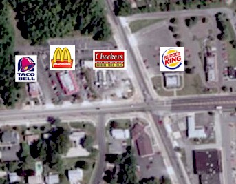 fast food restaurants. Check out this aerial photo from Map Quest...