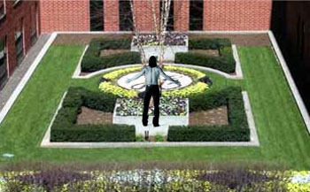 famous "ready to fight" pose now stands in the courtyard.
