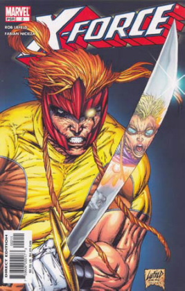 And again, I use “holding” in the loosest sense of the word, because Rob Liefeld does not understand how a human hand grasps something. Take this cover, for example. Shatterstar’s fist is at a minimum the same size as his head, and it’s somehow supposed to be holding that sword, which I guess Cannonball is flying at sideways or something?
