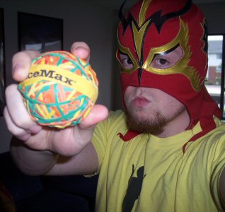 He throws the rubber band ball (logo first) across the room and banks it off of the control panel. The control panel achieves consciousness and locates Dr. Doom, who is standing across the foyer. The P wasn't lying when he said they needed supplies. Off panel somewhere Doom gets smacked in the back of the head with a rolodex and is quickly defeated.