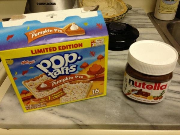 STEP 19: Now, on to the filling! There’s pre-made pie filling out there, but what we’re going to use are tiny pie flavored Poptarts! METAPIE. Also Nutella. The internet loves Nutella. So does Spillygirl. Wait till she gets a taste of this!