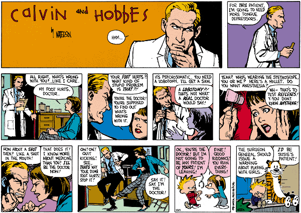 "It's psychosomatic. You need a lobotomy. I'll get a saw."