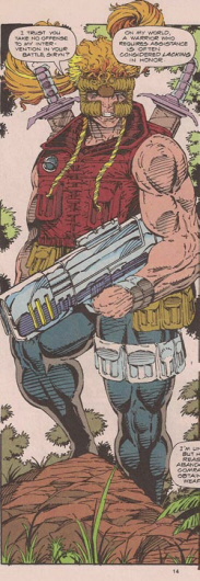 Welcome to the 90s! Guns, swords, and long hair. Is it any wonder that it took so long for comic books to be a socially-acceptable artistic medium? If Jack Kirby is the Thomas Edison of comics, Rob Liefeld is the Al Jolson. Except I think Al Jolson could draw pretty well.