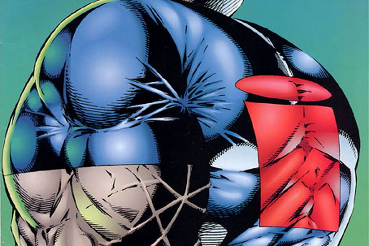 This is the prototype of "that" Captain America drawing, and I honestly can’t decide if this is worse, or better. What sort of reference guide so you suppose Liefeld looks at for drawing musculature and anatomy? Ha! I’m kidding, of course.