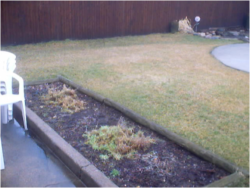 At the site of this dormant little garden once stood four evergreen