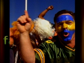 WHOO PRIMARY COLORS ARE NUMBER ONE A RadioShack XTREME FAN is so wild and crazy that he wears Green Bay Packers jerseys and paints his face with the color scheme of teams that don't exist.