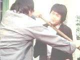 HEAD BADGUY hits WEIRD CHINESE DOT GAME PLAYER in the neck until he spits out blood. Cut to title screen.