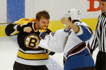 I never played hockey as a kid, but I still enjoy watching games on TV. That is games in which the Bruins keep 50% of the opposing team's players from scoring hat tricks. The only good thing to come from the Bruins in the past 10 years was PJ Stock, and he basically just beat the crap out of people.