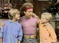 Besides the main characters, the supporting cast on the Charmings remains so unmemorable that the cast themselves cannot remember playing the roles. They remember the Spring of 87 and the Fall of 87-88 as a time when they "slept a lot" and "experimented with new and amazing forms of lame." Let's pretend that the children were played by JTT and Zachary Ty Bryan, so that if I can't get their armor-piercing grins out of my mind I can call them a couple of fudgepackers and move on. ARGH ARGH ARGH. How DOES one type the Home Improvement Man Laugh? What a couple of fudgepackers.