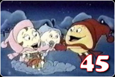 This umpteenth retelling of "A Christmas Carol" finds the Nearsighted Mr. Magoo playing Scrooge in a play. Unfortunately, there are next to no jokes about how he has poor eyesight, so he really only LOOKS like Magoo. I'll call him Magooge. It's more verbatim Dickens than most popular-cartoon-character-plays-Scrooge specials, but it adds some original songs. One sung by the Cratchet family finds Tiny Tim, played by Gerald McBoing-Boing, who went through the trouble of learning his lines in English as opposed to ... um, boing noises ... asking their father for "razzleberry dressing." I've never heard of a razzleberry, but Tiny Tiny won't shut up about it. Also, when Link to the Christmas Past takes Magooge to visit his childhood self, they sing a song in perfect harmony, and the boy Magooge mysteriously knows when to pause for his future spirit, and then when to start singing again. It's like when you're in the car and you only sing the harmony parts, only reversed.