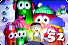 Besides having better animation, this second Christmas movie also has a more interesting story. Bob the Tomato and Larry the Cucumber play the parts of Cavis Appythart and Millward Phelps, a Gilbert and Sullivan type pair in late 19th Century London. The two plan to open their musical, "The Princess and the Plumber", on Christmas Eve, proclaiming that it will teach London how to love. They want their opening night to be such a success, that they even attempt to get the children of St. Bart's to cancel their Nativity play, set for the same evening. The children's play even attracts more attention by stating that it will feature the Star of Christmas, a religious artifact that hasn't been seen by the public in decades. Naturally, Cavis and Millward discover that St. Bart's Nativity play portrays the true meaning of Christmas, and promote their pageant. And by "naturally," I mean and "after being chased down by an angry Irish carrot named Moyer the Destroyer for trying to steal the Star of Christmas."