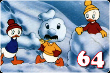 I used to love the short, seven-minute Disney cartoons starring the standard characters, when I still had the Disney Channel. This one finds Donald sledding and singing "Jingle Bells" on a snowy hill, when he spots his nephews building a snowman. He slides down the hill and destroys their masterpiece. Knowing that their uncle will try the same trick again, Huey, Dewey and Louie build their next snowman in front of a large rock, and from there it's an all out snow war, involving life-size snow fortresses, bowling-pin-shaped ducks, and makeshift mortar using flaming coals to melt each other's strongholds.