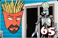 Memorable moment: After Carl sells his bloody house to Danzig, Shake tries to do the same thing by inviting Danzig into his HAUNTED KITCHEN!!11 In comes Meatwad under a bed sheet, moaning "Daaaanziiiig, you want somethin' to eeeeeat?" After he leaves, the Ghost of Christmas Past comes out from the closet, and says "I cannot live with that guy. He is so annoying, he is so frightening, and he doesn't wear a shirt."