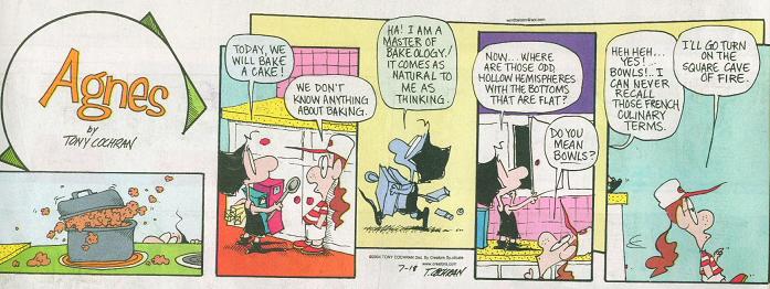 I spent last Sunday morning, as I do every Sunday morning, sitting down in my favorite chair and waiting for my faithful dog to fetch me the newspaper. I then fell on my ass and collapsed on the floor since I do not have a favorite chair, where I remained for the rest of the day since I do not have a dog. Upon returning home from work, B and Emily spent approximately three hours poking me with a stick and speculating as to whether or not I was dead. Here is my review of this Sunday's Comics section.