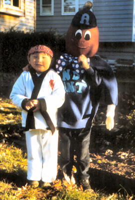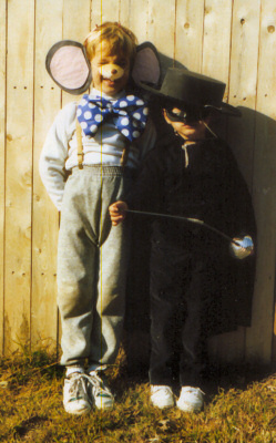 Yes, that's Mike Fireball, age 7. For a reason I seem to have successfully blocked out of my memory, I decided to go trick-or-treating as a nondescript mouse wearing the largest bow tie ever. You can almost see the embarrassment on my little brother Zorro's face. In retrospect, it reminds me of that one episode where Chrissy Seaver invents a rude & mischievous imaginary friend, a 6-foot tall mouse who looks frighteningly similar to her brother, Mike, if he was a giant rodent. Having Mike & Ike in her room at the same time sure was a great Kirk camera trick!