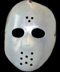 What's the matter, Billy? It's the day before Halloween, & you still haven't picked out a costume? Not to worry! All you need is a hockey mask from the Dollar Store, & you'll be instantly transformed into everyone's favorite death-defying mass murderer from Friday the 13th! You lazy piece of crap. Maybe next year you can cut a bunch of holes in a bed sheet & go as Charlie Brown.