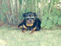 Next I was up. I nudged Cool Moe up to the judges as best I could. "Where's his leash?", the first woman asked. "Leash? Cool Moe D knows no bounds," I replied as I muttered the German attack phrase, "Achtun-sheiz". Cool Moe didn't move, I forgot that he neither knew German or how to attack somebody. I received last place.