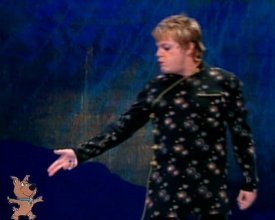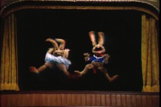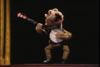 After a brief montage of the jug-band practicing and Ma Otter making her costume, we make our way to the talent show. This is where the movie becomes the most entertaining. It also features some of the worst puppetry in the history of the company. Like, remember in "Labyrinth" how there was that scene with all the orange guys who kept taking off their heads, and when you watch the behind the scenes documentary it's explained that they did the scene by putting the puppets on a backdrop of black velvet, and then blue screening it? Well, every performance at the talent show looks like it was done with the sam technique, minus the blue screen. It's just puppets sticking out of a black backdrop. For that matter, these are master puppeteers. We've all seen "The Muppets Take Manhattan," we've all seen "The Dark Crystal." So why then does it look like all the muppets are being controlled by John Cusack's character in "Being John Malkovich"? Anyway, some of the more entertaining portions of the talent show include: