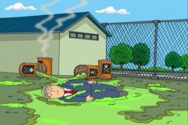 to get even by rolling around in the sludge himself. Later, he is