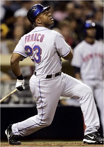 In this strange 21st century, a 48-year-old man named Julio Franco goes to work every day, doing what most others have stopped doing a decade ago. To the left you see him become the oldest man ever to hit a home run, but things like age are for us to keep track of, not him. To Franco, he is not 25 or 35 or 48. He's Julio Franco, first baseman, New York Mets.