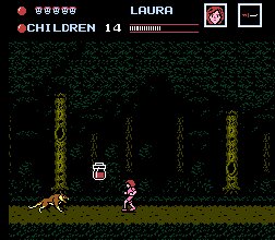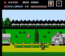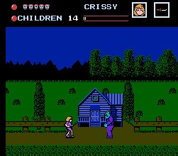 Let me rephrase that. Imagine that you're naked and tied to one of those giant sticky leather arm chairs and you can't move, not even if a tarantula was crawling on your nuts. Now imagine that Shannon Elizabeth, Anna Kournikova, and that chick from Species are all dressed like French Maids and eating bananas out of each others crotches like two feet in front of you. The NES version of Friday the 13th is that kind of frustration, expressed more accurately as the inescapable murder of children. Although by the end of this sentence I'm sure I will have reconsidered my analogy, seeing how any witness of a Nadia/Anna K banana crotchfest is much more important and life-altering than your kids being murdered.