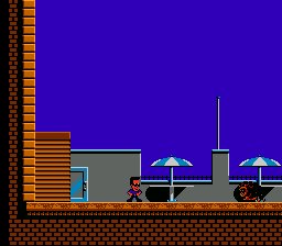 Getting to the kids before they die is the most frustrating part. The aforementioned zombie gorillas (I don't know what they're supposed to be, look at them and tell me yourself) will pop up in serious numbers wherever you go. Your best bet is to just jump over them, until there are like three on the screen and you jump into them and die. Not to mention that if you take a wrong turn you're screwed...the digital camp includes a giant forest to get completely lost in while Jason kills all the babies, a series of caves to get completely lost in while Jason kills all the babies, and a big lake (duh) in which Jason can pop out of the water and kill you instantly before going back to killing the babies. You actually WANNA go into the forest and the caves and places though because that's where all the good items are. Once you find the pitchfork (the most powerful weapon) and Jason's Mom's head (which keeps Jason from attacking you) the game becomes "Mario is Missing" and you can't possibly lose. But the moment the CPU senses that you want to utilize the game as any kind of entertainment the beep starts up and the first player controller goes flying across the room and into the television.
