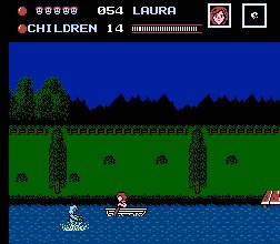 Graphics: The graphics are pretty well done for a late 80's game, when the most groundbreaking things were the big bosses in Blaster Master and you were lucky to get a sprite introduction with all those humorously misspelled words in them. Jason is GIANT on the screen most times, in a really nifty purple jumpsuit and a blue tinted hockey mask. I won't say he's the most intimidating character in gaming history, but he made this impressionable 8 year old create some custom curse words when I was rowing across the lake and he popped up outta the water. Friday the 13th was the first time I ever got grounded for profanity. Stupid fucking game. God dammit.