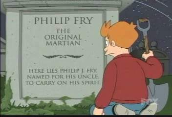 4. "Here lies Phillip J. Fry,