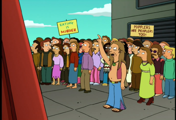 The gist: Protesters surround the Planet Express building to
