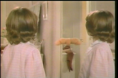 Once again, the source of the noise appears to be the mirror, but now the mystery appendage is attached to a face.