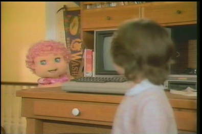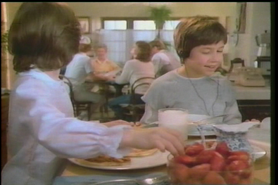 Unfortunately, he's out at baseball practice, and our heroines are left alone with Andrew's "word processing junk." The Hugga Bunch movie has made it a point this whole time to emphasize that ANDREW'S HOBBY IS ELECTRONICS. Earlier he was seen wearing headphones and working on his computer.