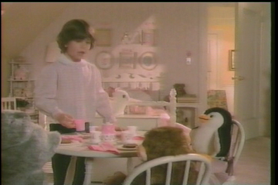 Bullshit. No 7-year-old questions why their parents got a surprise for them. Her older brother, Andrew, knows what's up. He gets some sort of book and respnods with the fakest "Oh, boy! Just what I always wanted!"