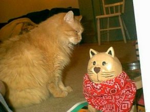 Outfit: bowtie / nudity Tagline: "I hate MIECES to PIECES!" Plot summary: One of the most popular segments on the original Huckleberry Hound show was "Pixie and Dixie," which put a spin on the old "cat and mouse" routine by adding an extra mouse and random articles of clothing. Mr. Jinks, a hip cat who spoke in beatnik lingo, undertook the impossible cartoon task of catching and killing something. Mr. Jinks ruled in the way that few in the late fifties could (even retroactive Fonzie), and each day I would sit through the gay blue Andy Griffith dog just to see if today was the day that Jinks could make a little decorative necklace out of Dixie's BIONIC REDNECK vest. (more) User Comments: What is the purpose of a bowtie on a cat? If I've learned nothing else from Emily's cat Tasha it's that putting something around her neck would just result in her trying to unsuccessfully bite her neck off.