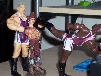 Self-proclaimed World's Greatest Tag Team finishing him off.