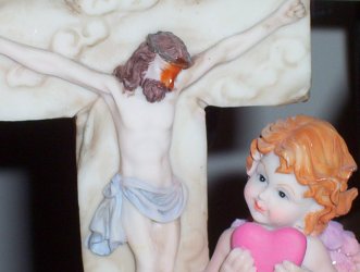 But then I did another walk down the aisle and whoops, I found Jesus being crucified by a big naked monster baby.