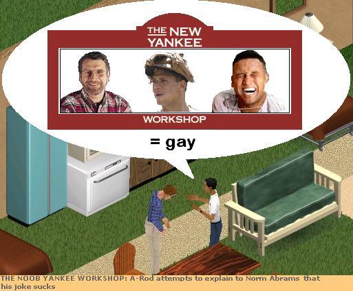 The new neighbors stopped by soon afterwards to wish them well. Norm Abrams, expert craftsman and host of the TV show "The New Yankee Workshop", paid them a visit. "Yeah, Norm seemed like a pretty cool guy," said Rodriguez. "But I'm pretty sure he came just so he could use that 'The new Yankee Infield? I thought this was the New Yankee Workshop!' joke. After he made that I laughed to make him feel good, then he re-adjusted his glasses and spent the next fifteen minutes just sort of staring at the ground. I don't know, it was just weird. What are a master craftsman and the walking harbinger of baseball doom supposed to say to each other?"