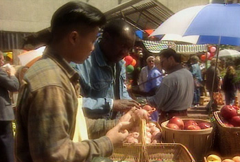 With an Asian and a black man shopping for produce. I'm starting to feel festive already.