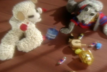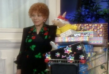 The creepy part about this isn't so much that Lamb Chop was in the bag the whole time, but that a minute later, she's at home playing dreidl with Hush Puppy, while Shari still has yet to return.