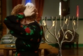 And, just in case we forgot, Alan turns to the camera and says, "I hope she makes latkes!" Shut up, Alan Thicke; forty seconds ago, you thought Chanukah was a birthday party.