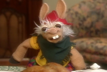 Great. The scary ventriloquist lady my sister used to watch before Sesame Street came on. I was skeptical when my friend first mentioned that she had a Chanukah special starring Lamb Chop, so I made her confirm that it was more than just an hour's worth of jokes about I LIKE LATKES and LATKES ARE DELICIOUS before she let me borrow it. There are still a lot of those, but she promised a surprise that made up for it, so I agreed to a review.