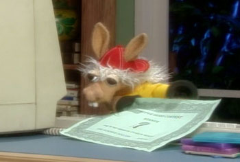 Back in the kitchen with Lamb Chop, Shari points to a familiar, yet interestingly new-looking object and asks the camera, "Does anybody know what THIS is?"