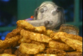 After Hush Puppy insists that he can keep a secret by barking like a seal (above) and saying that's what his lips are, Charlie Horse lets him in on the urgency behind his superhero-inventing on his "superhero computer program," which I put in quotes because he says words like "computer" and "program" in the same way that my mother can't differentiate between e-mail, Word and the desktop. Plus he pronounces the second half of "program" like the second half of the word "pilgrim," which I think is cute, for some reason. Probably the same unknown reason why I enjoy the crap out of when Zoidberg calls Bender "robut." Or when someone with a southern draw pronounces it "dina-sour."
