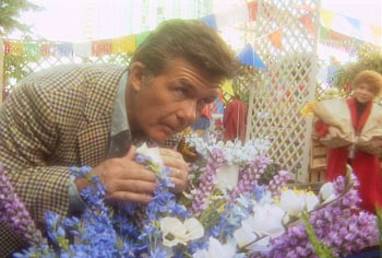 Special Guest Number Two is Alan Thicke, the dad from "Growing Pains." Shari finds Alan trying to wipe his snot off of some flowers he sneezed on while trying to smell them, because smelling things and then sneezing on them is hilarious when you're four years old. Like, bing and plong hilarious.