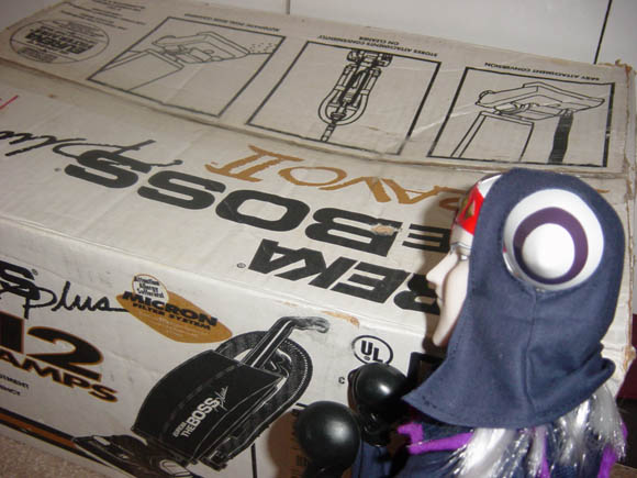 Here's my Box O' Junk. No, it doesn't contain a vacuum cleaner -- that's just to fool burglars. Unless they're compulsively clean burglars, then I'm fucked. This box is where I store the various crap I've collected over the years. With this much stuff, there's bound to be something I can review.