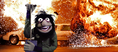 And so did one of the older kids. "Uh-oh. They're gonna have sex!" The two Koozebanian creatures raced towards each other, head on at full speed. Or as full speed as you can run sideways with your arm up in the air and covered in a horny Muppet. The sacred Galley-oh-hoop-hoop mating ritual came to a climax as the two creatures butted heads and EXPLODED into a cloud of sparkles and smoke. A roar of laughter erupted among the older kids and me. They could very well have been laughing at the sex. I was laughing at the exploded aliens, but all our laughter turned into a unified "Awww" at the sight of four chirping Koozebanian babies as the smoke cleared.