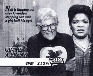 Partners in Crime: "Gimme a Break!" (which has the same illogical exclamation point as Chips Ahoy!) was revolutionary because it made fun of white people and fat people at the same time. It is also recorded in the Guinness Book of World Records as the sitcom from the 80's that, if analyzed, has caused the most strife for humanity. Not only did Nell Carter go on to do many depressing things, but the supporting cast all have sprouted like spawns of Lavos around the world.