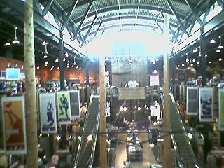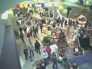 I took this picture last December. The mall was completely saturated with people from all over town who enjoyed saying things ad nauseum such as DID YOU KNOW THAT THE DAY AFTER THANKSGIVING IS THE BUSIEST SHOPPING DAY OF THE YEAR and TIS THE SEASON and DO NOT POINT THAT CAMERA PHONE AT ME PLEASE. A mall in December is something that can only be truly experienced by those behind the counter, since the mall public blacks out and turns into a massive gaggle of thoughtless automatons once it walks through the door. It's chaotic, exhausting, overwhelming, invigorating, and beautiful all at once. I really get tired of punkasses complaining about the commercialism and hollowness of Christmas. For the last three years, Oxmoor Center has been my home. I have endured months upon months upon months of leaning against my old glass counter and desperately hoping for someone to walk into the store, and watching as my baby became a veritable ghost town. Come Christmas, all the thousands of the mall's mommies and daddies came in to make it what it was supposed to be all along, and it was happy. Someday, the people will come and cut down the mall so that they can make a boat and sail away, and then they'll come back as old people and use the stump as a place to sit down.