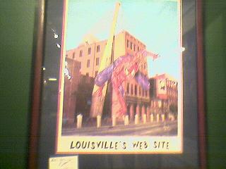 Sorry it's kind of a shaky shot; I was forced to avert my eyes. It's called LOUISVILLE'S WEB SITE. It features Spider-Man swinging from the Louisville Slugger Bat Factory.
