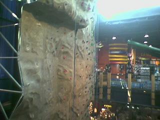 Another holdover from times gone by is a rock climbing wall. As far as I'm concerned, if a store has a bunch of trees and a fucking wall made of rock in it, it's certifiably hardcore. One time, my regional manager (my boss's boss's boss) came to visit my store. He said, "You know, the Galyan's on the other side of the mall here gets a lot of traffic. It's a great place to shop. What do we need to do to be like them?" I told him that we needed a rock climbing wall. He thought I was serious, and he tried to save me in front of everybody with, "Well, heh...yeah, that's thinking creatively, I like that." I was at such a loss for words that I ate my shirt, right then and there.
