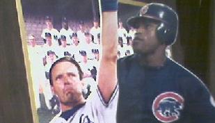 The nice folks at Field of Dreams took the liberty of covering up the obscenity with a piece of paper. The guy saw me looking at it, and he said with a grin, "You know, he's really giving the finger in that picture." I said, "Neat!" But would I should have said was, "Oh shit, I thought he was giving the piece of paper that's taped onto a photo of him. THAT WOULD HAVE BEEN SOME TWILIGHT ZONE SHIT RIGHT THERE."